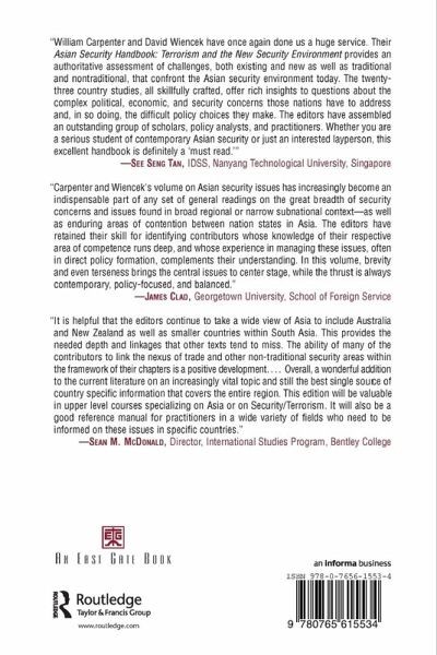 This thoroughly revised and updated edition of Asian Security Handbook focuses on the new challenges to security in the Asia-Pacific region presented by international terrorism. It reviews old security realities covered in previous editions, and highlights more recent security issues in the region, including the North Korean threat, weapons of mass destruction proliferation, the South China Sea dispute, and the future U.S.-China rivalry. Featuring contributions by a distinguished group of international security and Asia experts, this new edition has been reformatted and restructured. A new introductory chapter on terrorism sets the stage for the country-by-country profiles and assessments of the political-security situations in twenty-three individual nations. A new appendix on foreign terrorist organizations is also included.