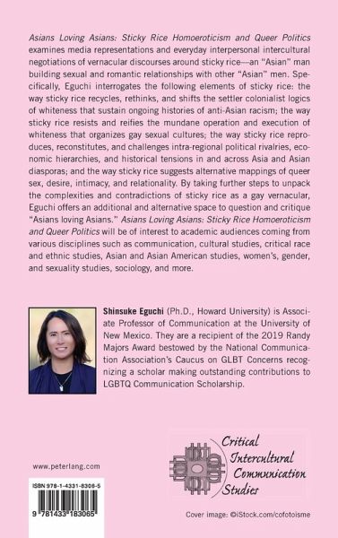 Asians Loving Asians: Sticky Rice Homoeroticism and Queer Politics examines media representations and everyday interpersonal intercultural negotiations of vernacular discourses around sticky rice-an "Asian" man building sexual and romantic relationships with other "Asian" men. Specifically, Eguchi interrogates the following elements of sticky rice: the way sticky rice recycles, rethinks, and shifts the settler colonialist logics of whiteness that sustain ongoing histories of anti-Asian racism; the way sticky rice resists and reifies the mundane operation and execution of whiteness that organizes gay sexual cultures; the way sticky rice reproduces, reconstitutes, and challenges intra-regional political rivalries, economic hierarchies, and historical tensions in and across Asia and Asian diasporas; and the way sticky rice suggests alternative mappings of queer sex, desire, intimacy, and relationality. By taking further steps to unpack the complexities and contradictions of sticky rice as a gay vernacular, Eguchi offers an additional and alternative space to question and critique "Asians loving Asians." Asians Loving Asians: Sticky Rice Homoeroticism and Queer Politics will be of interest to academic audiences coming from various disciplines such as communication, cultural studies, critical race and ethnic studies, Asian and Asian American studies, women's, gender, and sexuality studies, sociology, and more.