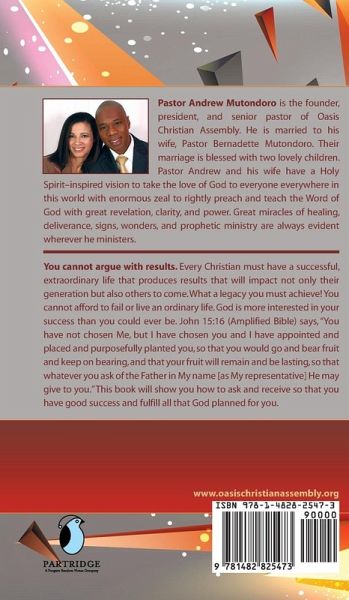 You cannot argue with results. Every Christian must have a successful, extraordinary life that produces results that will impact not only their generation but also others to come. What a legacy you must achieve! You cannot afford to fail or live an ordinary life. God is more interested in your success than you could ever be. John 15:16 (Amplified Bible) says, "You have not chosen Me, but I have chosen you and I have appointed and placed and purposefully planted you, so that you would go and bear fruit and keep on bearing, and that your fruit will remain and be lasting, so that whatever you ask of the Father in My name [as My representative] He may give to you." This book will show you how to ask and receive so that you have good success and fulfill all that God planned for you.