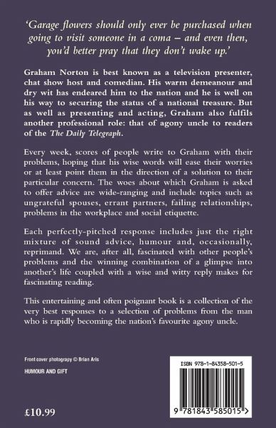 Graham Norton is best known as a television presenter, chat show host and comedian. His warm demeanour and dry wit has endeared him to the nation and he is well on his way to securing the status of a national treasure. But as well as presenting and acting, Graham also fulfils another professional role: that of agony uncle to readers of The Daily Telegraph. Every week, scores of people write to Graham with their problems, hoping that his wise words will ease their worries or at least point them in the direction of a solution to their particular concern. The woes about which Graham is asked to offer adive are wide-ranging and include topiME such as ungrateful spouses, errant partners, failing relationships, problems in the workplace and social etiquette. Each perfectly-pitched response includes just the right mixture of sound advice, humour and, occasionally, reprimand. We are, after all, fascinated with other people's problems and the winning combination of a glimpse into another's life coupled with a wise and witty reply makes for fascinating reading. This entertaining and often poignant book is a collection of the very best responses to a selection of problems from the man who is rapidly becoming the nation's favourite agony uncle.