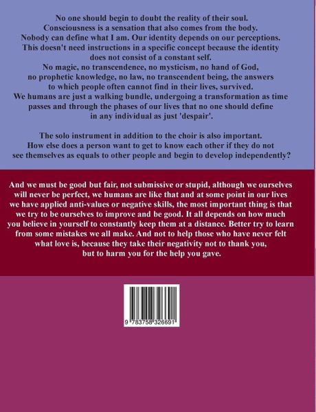 All about Marriage ! No one should begin to doubt the reality of their soul. Consciousness is a sensation that also comes from the body. Nobody can define what I am. Our identity depends on our perceptions. This does not need instructions in a specific concept because the identity does not consist of a constant self. No magic, no transcendence, no mysticism, no hand of God, no prophetic knowledge, no law, no transcendent being, the answers to which people often cannot find in their lives, survived. We humans are just a walking bundle, undergoing a transformation as time passes and through the phases of our lives that no one should define in any individual as just 'despair'.