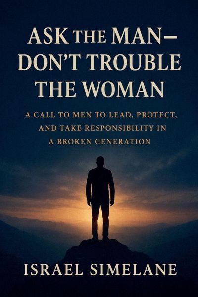 Book Description Ask The Man - Don't Trouble The Woman is a bold and timely call to men to rise, lead, and take responsibility in a generation marked by confusion, broken homes, and misplaced blame. Rather than adding to the cultural noise that accuses, excuses, or divides, this book goes straight to the root: when men abandon their God-given role, families weaken, societies fracture, and women and children carry burdens they were never meant to bear. Written with clarity, conviction, and compassion, Israel Simelane challenges men to reclaim true leadership-not domination or abuse, but sacrificial responsibility. Drawing from biblical principles, real-life observations, and hard truths often avoided, the book confronts passivity, immaturity, and moral cowardice while restoring the original design of manhood as protector, provider, and servant-leader. This is not a book that attacks women or diminishes their value. Instead, it defends them by calling men to account. It exposes how modern culture has shifted responsibility away from men, leaving women to fight battles alone and children to grow up without guidance, protection, or identity. Ask The Man - Don't Trouble The Woman speaks to husbands, fathers, young men, church leaders, and policymakers alike. It is both a warning and an invitation-a warning about the cost of continued abdication, and an invitation for men to rise with courage, humility, and obedience to God. If a generation is to be healed, the question must be asked in the right place. This book insists that the first question belongs to the man. Author: Israel Simelane