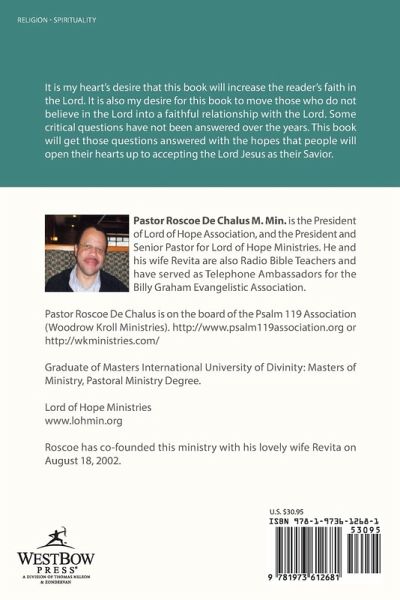 It is my hearts desire that this book will increase the readers faith in the Lord. It is also my desire for this book to move those who do not believe in the Lord into a faithful relationship with the Lord. Some critical questions have not been answered over the years. This book will get those questions answered with the hopes that people will open their hearts up to accepting the Lord Jesus as their Savior.