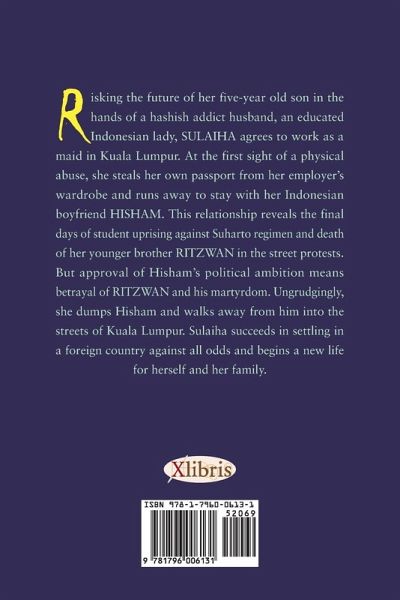 Risking the future of her five-year old son in the hands of a hashish addict husband, an educated Indonesian lady, SULAIHA agrees to work as a maid in Kuala Lumpur. At the first sight of a physical abuse, she steals her own passport from her employer's wardrobe and runs away to stay with her Indonesian boyfriend HISHAM. This relationship reveals the final days of student uprising against Suharto regimen and death of her younger brother RITZWAN in the street protests. But approval of Hisham's political ambition means betrayal of RITZWAN and his martyrdom. Ungrudgingly, she dumps Hisham and walks away from him into the streets of Kuala Lumpur. Sulaiha succeeds in settling in a foreign country against all odds and begins a new life for herself and her family.
