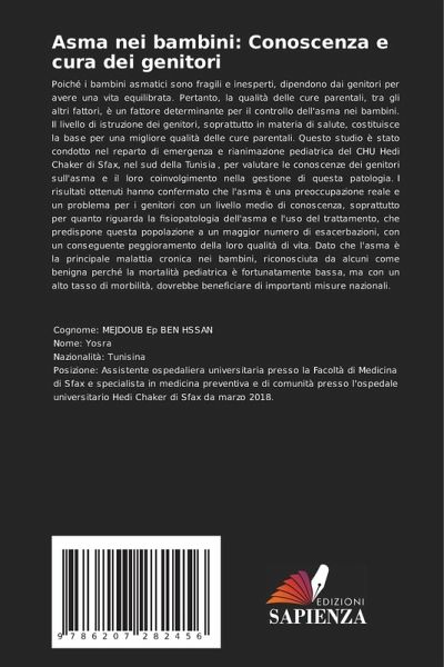 Poiché i bambini asmatici sono fragili e inesperti, dipendono dai genitori per avere una vita equilibrata. Pertanto, la qualità delle cure parentali, tra gli altri fattori, è un fattore determinante per il controllo dell'asma nei bambini. Il livello di istruzione dei genitori, soprattutto in materia di salute, costituisce la base per una migliore qualità delle cure parentali. Questo studio è stato condotto nel reparto di emergenza e rianimazione pediatrica del CHU Hedi Chaker di Sfax, nel sud della Tunisia, per valutare le conoscenze dei genitori sull'asma e il loro coinvolgimento nella gestione di questa patologia. I risultati ottenuti hanno confermato che l'asma è una preoccupazione reale e un problema per i genitori con un livello medio di conoscenza, soprattutto per quanto riguarda la fisiopatologia dell'asma e l'uso del trattamento, che predispone questa popolazione a un maggior numero di esacerbazioni, con un conseguente peggioramento della loro qualità di vita. Dato che l'asma è la principale malattia cronica nei bambini, riconosciuta da alcuni come benigna perché la mortalità pediatrica è fortunatamente bassa, ma con un alto tasso di morbilità, dovrebbe beneficiare di importanti misure nazionali.