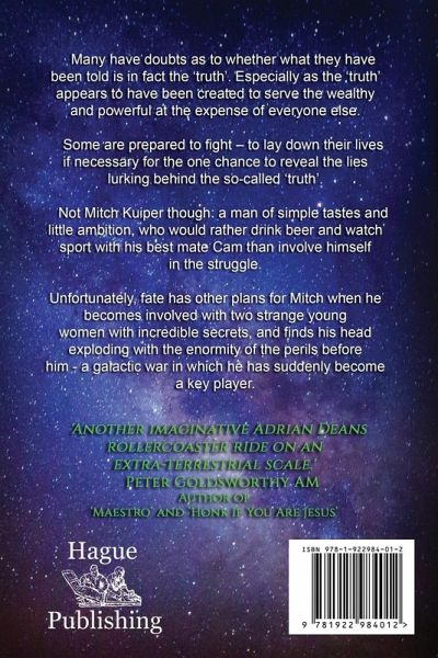 Mitch Kuiper works in the parks for Newtown Council and the bane of his life is asparagus grass - a tough spiky weed that will conquer entire suburbs if not ripped out wherever it takes root. Mitch is a man of simple tastes. He loves drinking beer and watching sport but, as the story opens, becomes involved with two quirky young women. Lisa is a permanent uni student engaged in some very arcane research. The other (Marty Mindshadow) has an even more mysterious secret and, as Mitch is drawn into their worlds, finds his head exploding with the enormity of the perils before him - a galactic war, in which he has suddenly become a key player. How can a Sydney gardener save not just the Earth, but the galaxy that contains it? A secret tale of pan-cosmic enormity. 'Another imaginative Adrian Deans' rollercoaster ride on an extra-terrestrial scale.' Peter Goldsworthy AM (Maestro; Honk If You Are Jesus)
