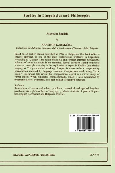 Based on an earlier edition published in 1992 in Bulgarian, this book offers a specific approach to one of the most controversial problems in linguistics. According to it, aspect is the result of a subtle and complex interplay between the referents of verbs and nouns in the sentence. Special attention is paid to the role nouns and noun phrases play in the explication of aspect in English (and similar languages). The grammatical marking of aspect is shown to be a compensatory phenomenon imposed by language structure. Comparisons made using Slavic (mainly Bulgarian) data reveal that compositional aspect is a mirror image of verbal aspect. When explicated compositionally, aspect is also determined by pragmatic factors. Ultimately, it is part of man's cognitive potential.
