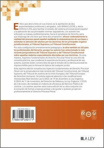 Tratamiento sistemático y global del Derecho Procesal Penal español, actualizado a la nueva Ley procesal, y exponiendo el Derecho que realmente se aplica en los tribunales, que no siempre es el que se encuentra en la Ley de Enjuiciamiento Criminal: en unas ocasiones porque no existe regulación, y en otras porque la jurisprudencia ha completado lo que resulta de los preceptos legales. En tus manos el tratamiento real y actual que tiene cada institución procesal, y la consulta práctica, que condensa la experiencia docente y profesional de sus autores, quienes están convencidos de que el estudio de la ciencia procesal es imprescindible para la formación básica de cualquier jurista.