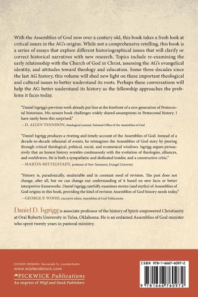 With the Assemblies of God now over a century old, this book takes a fresh look at critical issues in the AG's origins. While not a comprehensive retelling, this book is a series of essays that explore different historiographical issues that will clarify or correct historical narratives with new research. Topics include re-examining the early relationship with the Church of God in Christ, assessing the AG's evangelical identity, and attitudes toward theology and education. Some three decades since the last AG history, this volume will shed new light on these important theological and cultural issues to better understand its roots. Perhaps these conversations will help the AG better understand its history as the fellowship approaches the problems it faces today.