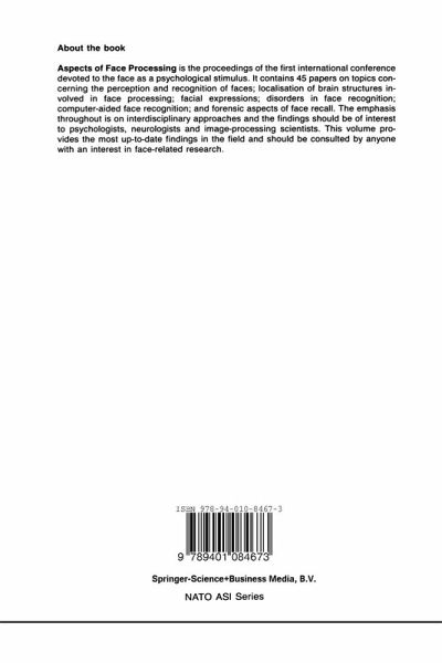 1. Introduction.- to aspects of face processing: Ten questions in need of answers.- 2. Perceptual Processes.- Microgenesis of face perception..- Recognition memory transfer between spatial- frequency analyzed faces..- Reaction time measures of feature saliency in a perceptual integration task..- Perception of upside-down faces: An analysis from the viewpoint of cue-saliency..- 3. Memory Processes.- On the memorability of the human face..- Face recognition is not unique. Evidence from individual differences..- Lateral reversal and facial recognition memory: Are right-lookers special?.- Context effects in recognition memory of faces: Some theoretical problems..- 4. Cognitive Processes.- Recognising familiar faces..- Face recognition: More than a feeling of familiarity?.- Getting semantic information from familiar faces..- What happens when a face rings a bell?: The automatic processing of famous faces..- 5. Socio-Cognitive Factors.- Levels of representation and memory for faces..- Formation of facial prototypes..- Stereotyping and face memory..- The influence of race on face recognition..- Faces, prototypes, and additive tree representations..- 6. Cortical Specialisation.- Functional organization of visual neurones processing face identity..- Hemispheric asymmetry in face processing in infancy..- Models of laterality effects in face perception..- Hemispheric asymmetries in face recognition and naming: effects of prior stimulus exposure..- Patterns of cerebral dominance in wholistic and featural stages of facial processing..- Hemispheric differences in the evoked potential to face stimuli..- Cerebral and behavioural asymmetries in the processing of "unusual" faces: A review..- 7. Prosopagnosias.- Current issues on prosopagnosia..- The cognitive psychophysiology ofprosopagnosia..- Prosopagnosia: Anatomic and physiologic aspects..- Faces and non-faces in prosopagnosic patients..- Observations on a case of prosopagnosia..- 8. Brain Pathology.- Facial processing in the dementias..- The matching of famous and unknown faces, given either the internal or the external features: A study on patients with unilateral brain lesions..- Face recognition dysfunction and delusional mis identification syndromes (D.M.S.)..- 9. Facial Expressions.- Facial expression processing..- The perception of action versus feeling in facial expression..- Towards the quantification of facial expressions with the use of a mathematic model of the face..- Is the faster processing of expressions of happiness modality-specific?.- Primary stages in single-glance face recognition: Expression and identity..- Affective and cognitive decisions on faces in normals..- 10. Applications and Computer Technology.- Dynamics of facial recall..- The recall and reconstruction of faces: Implications for theory and practice..- An interactive computer system for retrieving faces..- Investigating face recognition with an image processing computer..- Practical face recognition and verification with WISARD..- 11. An Overview.- Plenary session. An overview. Complementary approaches to common problems in face recognition..- 12. References.- Addresses of Principal Authors.