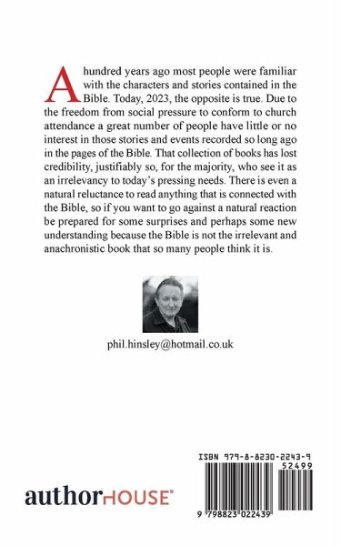 A hundred years ago most people were familiar with the characters and stories contained in the Bible. Today, 2023, the opposite is true. Due to the freedom from social pressure to conform to church attendance a great number of people have little or no interest in those stories and events recorded so long ago in the pages of the Bible. That collection of books has lost credibility, justifiably so, for the majority, who see it as an irrelevancy to today's pressing needs. There is even a natural reluctance to read anything that is connected with the Bible, so if you want to go against a natural reaction be prepared for some surprises and perhaps some new understanding because the Bible is not the irrelevant and anachronistic book that so many people think it is.