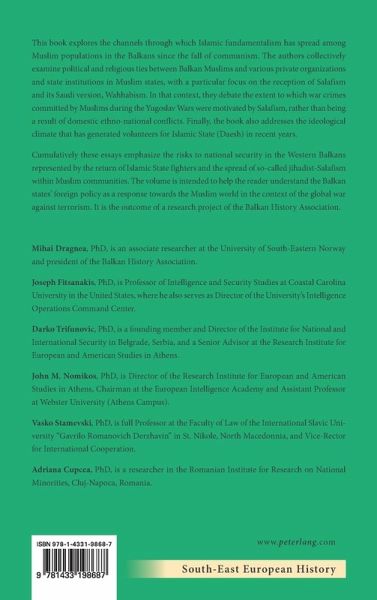 Cumulatively these essays emphasize the risks to national security in the Western Balkans represented by the return of Islamic State fighters and the spread of so-called jihadist-Salafism within Muslim communities. The volume is intended to help the reader understand the Balkan states' foreign policy as a response towards the Muslim world in the context of the global war against terrorism. It is the outcome of a research project of the Balkan History Association.