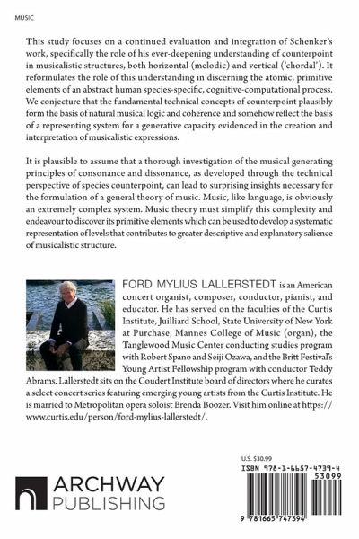 This study focuses on a continued evaluation and integration of Schenker's work, specifically the role of his ever-deepening understanding of counterpoint in musicalistic structures, both horizontal (melodic) and vertical ('chordal'). It reformulates the role of this understanding in discerning the atomic, primitive elements of an abstract human species-specific, cognitive-computational process. We conjecture that the fundamental technical concepts of counterpoint plausibly form the basis of natural musical logic and coherence and somehow reflect the basis of a representing system for a generative capacity evidenced in the creation and interpretation of musicalistic expressions. It is plausible to assume that a thorough investigation of the musical generating principles of consonance and dissonance, as developed through the technical perspective of species counterpoint, can lead to surprising insights necessary for the formulation of a general theory of music. Music, like language, is obviously an extremely complex system. Music theory must simplify this complexity and endeavour to discover its primitive elements which can be used to develop a systematic representation of levels that contributes to greater descriptive and explanatory salience of musicalistic structure.