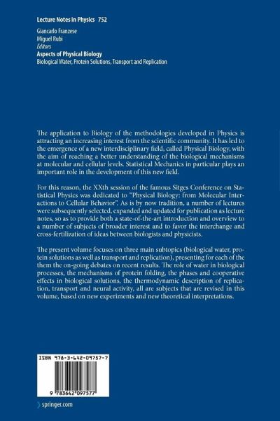The present volume focuses on three main subtopics (biological water, protein solutions as well as transport and replication), presenting for each of them the on-going debates on recent results. The role of water in biological processes, the mechanisms of protein folding, the phases and cooperative effects in biological solutions, the thermodynamic description of replication, transport and neural activity, all are subjects that are revised in this volume, based on new experiments and new theoretical interpretations.