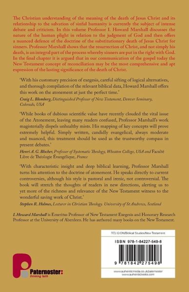 The Christian understanding of the meaning of the death of Jesus Christ and its relationship to the salvation of sinful humanity is currently the subject of intense debate and criticism. The papers covering this important area are expanded versions of the 2006 series of Chuen King Lectures given in the Chinese University of Hong Kong. In the first two chapters Howard Marshall discusses the nature of the human plight in relation to the judgment of God and then offers a nuanced defence of the doctrine of the substitutionary death of Jesus Christ for sinners. The third chapter examines the place of the resurrection of Christ as an integral part of the process whereby sinners are put in the right with God. In the final chapter argues that in our communication of the gospel today the New Testament concept of reconciliation may be the most comprehensive and apt expression of the lasting significance of the death of Christ.