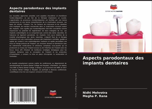 Les nouvelles approches actuelles sont capables d'accélérer et d'améliorer l'ostéo-intégration, ce qui fait de la thérapie implantaire un succès. L'appréciation du processus d'ostéointégration est facilitée par une bonne connaissance et une bonne compréhension de la cicatrisation osseuse. Les types de cellules, l'implant, l'os, les facteurs de croissance et les cytokines sont impliqués de manière coordonnée dans la cicatrisation osseuse autour des implants. Cela signifie que l'ostéointégration doit être considérée comme l'expression du potentiel de régénération de base endogène de l'os. Les implants ostéointégrés ne se comportent pas comme des dents naturelles. En l'absence de ligament parodontal, les implants n'ont qu'un dixième de la mobilité physiologique des dents naturelles. L'objectif final de la thérapie implantaire est une cicatrisation osseuse péri-implantaire contrôlée, guidée et rapide qui conduit à une ostéointégration meilleure et rapide permettant une mise en charge précoce de l'implant. Les cliniciens doivent se familiariser avec les événements moléculaires et cellulaires complexes sous-jacents qui se produisent au niveau de l'implant osseux ou de l'interface de l'implant avec les tissus mous afin d'évaluer de meilleures stratégies biologiques pour les implants dentaires avec la conception de l'implant et les protocoles d'implantation, y compris la mise en place chirurgicale, la restauration et l'entretien.