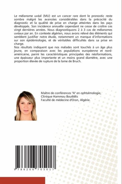 Le mélanome uvéal (MU) est un cancer rare dont le pronostic reste sombre malgré les avancées considérables dans la précocité du diagnostic et la qualité de prise en charge atteintes dans les pays développés. Son incidence annuelle cependant ne cesse de croître ces vingt dernières années. Nous diagnostiquons 2 à 3 cas de mélanomes uvéaux par an. En contexte algérien, nous avons relevé des éléments qui semblent justifier notre étude, notamment un manque d'informations sur son épidémiologie, et de véritables difficultés dans sa prise en charge.Nos résultats indiquent que nos malades sont touchés à un âge plus jeune, en comparaison avec les populations européenne et nord-américaine, parmi les caractéristiques principales des néoformations, une épaisseur plus importante et un moins grand diamètre, avec une proportion élevée de rupture de la lame de Bruch.