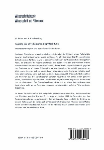 Allgemeine Begriffsbildung in der Physik.- I Begriffsbildung unter logischem Aspekt.- Logische versus physikalische Definitionen in der physikalischen Begriffsbildung.- Über eine Methode der Bestimmung theoretischer Terme.- Sind "Physikalische Begriffe" definierbar?.- II Begriffsbildung unter methodischem Aspekt.- Physikalische Begriffsbildung gegen das "Prinzip der methodischen Ordnung"?.- Axiomatische Basis und physikalische Begriffe.- Einführung spezieller Begriffe.- III Begriffe zu Raum und Zeit.- Zur Zeitmessung.- Stetigkeit und Vollständigkeit in der Geometrie.- Zur Eindeutigkeit der Zeit in der Protophysik.- Zur Charakterisierung des euklidischen Raumes durch Gebiete und Transporte.- IV Begriffe der Mechanik.- Die Bedeutung des d'Alembertschen Prinzips für die Definition des Kraftbegriffes.- Zur Strukturart der allgemein-nichtrelativistischen Punktmechanik.- Der Status des Massen- und Kraftbegriffes in einer technik-orientierten Interpretation der klassischen Mechanik.