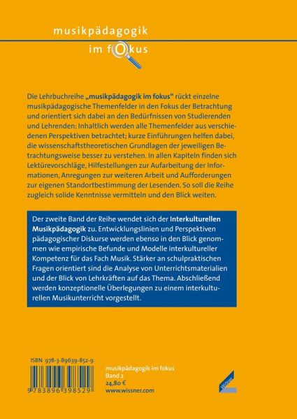 Die Lehrbuchreihe "musikpädagogik im fokus" rückt einzelne musikpädagogische Themenfelder in den Fokus der Betrachtung und orientiert sich dabei an den Bedürfnissen von Studierenden und Lehrenden: Inhaltlich werden alle Themenfelder aus verschiedenen Perspektiven betrachtet; kurze Einführungen helfen dabei, die wissenschaftstheoretischen Grundlagen der jeweiligen Betrachtungsweise besser zu verstehen. In allen Kapiteln finden sich Lektürevorschläge, Hilfestellungen zur Aufarbeitung der Informationen, Anregungen zur weiteren Arbeit und Aufforderungen zur eigenen Standortbestimmung der Lesenden. So soll die Reihe zugleich solide Kenntnisse vermitteln und den Blick weiten. Der zweite Band der Reihe wendet sich der Interkulturellen Musikpädagogik zu. Entwicklungslinien und Perspektiven pädagogischer Diskurse werden ebenso in den Blick genommen wie empirische Befunde und Modelle interkultureller Kompetenz für das Fach Musik. Stärker an schulpraktischen Fragen orientiert sind die Analyse von Unterrichtsmaterialien und der Blick von Lehrkräften auf das Thema. Abschließend werden konzeptionelle Überlegungen zu einem interkulturellen Musikunterricht vorgestellt.