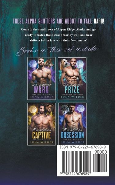 These Alpha shifters are about to fall HARD! Come to the small town of Aspen Ridge, Alaska and get ready to watch these swoon worthy wolf and bear shifters fall in love with their fated mates! Books in this set include: The Alpha's Ward The Alpha's Prize The Alpha's Captive The Alpha's Obsession