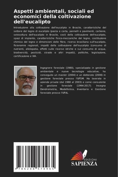 Introduzione alla coltivazione dell'eucalipto in Brasile, caratteristiche del settore del legno di eucalipto (pasta e carta, pannelli e pavimenti, carbone, selvicoltura dell'eucalipto in Brasile, costi della coltivazione dell'eucalipto, spazi di impianto, caratteristiche fisico-meccaniche del legno, costituzione chimica del legno e dimensioni delle fibre, ricerca brasiliana sull'eucalipto, fisionomie regionali, impatti della coltivazione dell'eucalipto (consumo di nutrienti, allelopatia, effetti sulle risorse idriche e sul consumo di acqua, biodiversità, pesticidi, strade e altri impatti), politiche, legislazione, certificazione e VIA.