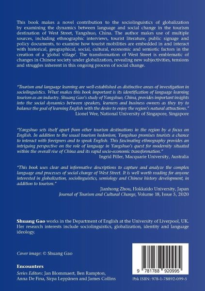 This book makes a novel contribution to the sociolinguistics of globalization by examining language and social change in the tourism destination of West Street, Yangshuo, China. It explores the contingencies and tensions in the creation of a 'global village' and reveals ambivalent struggles inherent in this ongoing process of social change.