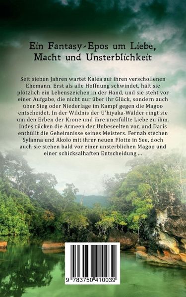 Seit sieben Jahren wartet Kalea auf ihren verschollenen Ehemann. Erst als alle Hoffnung schwindet, hält sie plötzlich ein Lebenszeichen in der Hand, und sie steht vor einer Aufgabe, die nicht nur über ihr Glück, sondern auch über Sieg oder Niederlage im Kampf gegen die Magoo entscheidet. In der Wildnis der U'hiyaka-Wälder ringt sie um den Erben der Krone und ihre unerfüllte Liebe zu ihm. Indes rücken die Armeen der Unbeseelten vor, und Daris enthüllt die Geheimnisse seines Meisters. Fernab stechen Sylanna und Akolo mit ihrer neuen Flotte in See, doch auch sie stehen bald vor einer unsterblichen Magoo und einer schicksalhaften Entscheidung ...