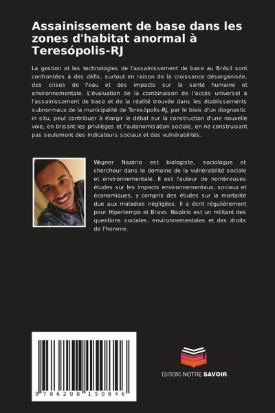 La gestion et les technologies de l'assainissement de base au Brésil sont confrontées à des défis, surtout en raison de la croissance désorganisée, des crises de l'eau et des impacts sur la santé humaine et environnementale. L'évaluation de la combinaison de l'accès universel à l'assainissement de base et de la réalité trouvée dans les établissements subnormaux de la municipalité de Teresópolis-RJ, par le biais d'un diagnostic in situ, peut contribuer à élargir le débat sur la construction d'une nouvelle voie, en brisant les privilèges et l'autonomisation sociale, en ne construisant pas seulement des indicateurs sociaux et des vulnérabilités.