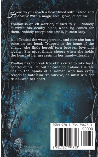 How do you reach a heart filled with hatred and death? With a magic steel glove, of course. Thallan is an elf warrior, cursed to kill. Nobody survives his deadly blade when he comes for them. Nobody except one small human lady. Isa offended the wrong person, and now she has a price on her head. Trapped in the home of the enemy, she finds herself torn between love and loyalty. She must finally choose when she holds the heart of her assassin in her hand-literally. Thallan has to break free of his curse to regain control of his life, but he can't do it alone. His fate lies in the hands of a woman who has every reason to hate him. To survive, he must win her trust... and her heart.