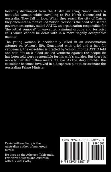 Recently discharged from the Australian army, Simon meets a beautiful woman while travelling to Far North Queensland in Australia. They fall in love. When they reach the city of Cairns they encounter a man called Wilson. Wilson is the head of a secret government agency called AATIO, an organization responsible for 'the lethal removal' of unwanted criminal groups and terrorist cells which cannot be dealt with in a more 'legally acceptable' manner. The young woman is accidentally killed in an assassination attempt on Wilson's life. Consumed with grief and a lust for vengeance, the ex-soldier is drafted by Wilson into the ATTIO fold and sets out on a blood soaked vendetta against the people he has been told were responsible for his wife's murder. But there is more to her death than meets the eye. As the story unfolds, the ex-soldier becomes involved in a desperate plot to assassinate the Australian Prime Minister.