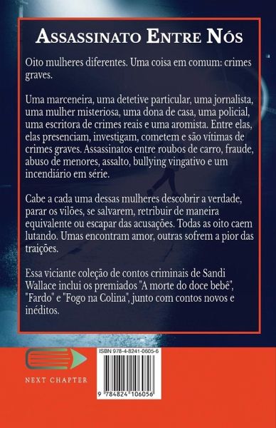 Oito mulheres diferentes. Uma coisa em comum: crimes graves. Uma marceneira, uma detetive particular, uma jornalista, uma mulher misteriosa, uma dona de casa, uma policial, uma escritora de crimes reais e uma aromista. Entre elas, elas presenciam, investigam, cometem e são vítimas de crimes graves. Assassinatos entre roubos de carro, fraude, abuso de menores, assalto, bullying vingativo e um incendiário em série. Cabe a cada uma dessas mulheres descobrir a verdade, parar os vilões, se salvarem, retribuir de maneira equivalente ou escapar das acusações. Todas as oito caem lutando. Umas encontram amor, outras sofrem a pior das traições. Essa viciante coleção de contos criminais de Sandi Wallace inclui os premiados "A morte do doce bebê", "Fardo" e "Fogo na Colina", junto com contos novos e inéditos.