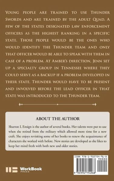 Young people are trained to use Thunder Swords and are trained by the adult Quad. A few of the states designated law enforcement officers as the highest ranking in a specific state. Those people would be the ones who would identify the Thunder team and only that officer would be able to speak with them in case of a problem. At Amber's direction, Jenn set up a specialty group in Tennessee where they could serve as a backup if a problem developed in their state. Thunder would have to be present and involved before the lead officer in that state was introduced to the Thunder team.