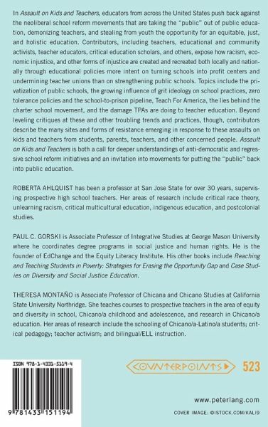 "So-called 'solutions' for improving public education interconnect in troubling ways-as is revealed insightfully and compellingly in this new and timely book. Ahlquist, Gorski, and Montaño have assembled an impressive collection of analyses that help us to unmask what are mere symptoms of broader movements to widen educational disparities, and to imagine alternatives and interventions with insight and conviction. Assault on Kids and Teachers should cause us to pause, and reimagine, and should be read immediately."-Kevin Kumashiro, Author, The Seduction of Common Sense: How the Right Has Framed the Debate on America's Schools; President-Elect, National Association for Multicultural Education
