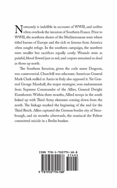 Normandy is indelible in accounts of WWII, and scribes often overlook the invasion of Southern France. Prior to WWII, the northern shores of the Mediterranean were where titled barons of Europe and the rich or famous from America often sought refuge. In the southern campaign, the numbers were smaller but sacrifices equally costly. Wounds were as painful, blood flowed just as red, and corpses remained as dead as those up north. The Southern Invasion, given the code name Dragoon, was controversial. Churchill was reluctant; American General Mark Clark stalled at Anzio in Italy also opposed it. Yet General George Marshall, the major strategist, won endorsement from Supreme Commander of the Allies, General Dwight Eisenhower. Within three months, Allied troops in the south linked up with Third Army elements coming down from the north. The linkage marked the beginning of the end for the Third Reich. Allies captured the German border city of Strasbourgh, and six months afterwards, the maniacal der Fuhrer committed suicide in a Berlin bunker.