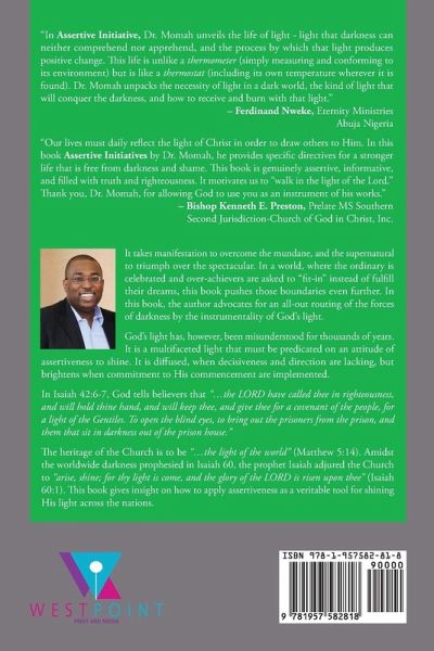 "In Assertive Initiative, Dr. Momah unveils the life of light - light that darkness can neither comprehend nor apprehend and the process by which that light produces positive change. This life is unlike a thermometer (simply measuring and conforming to its environment) but is like a thermostat (including its own temperature wherever it is found). Dr. Momah unpacks the necessity of light in a dark world, the kind of light that will conquer the darkness, and how to receive and burn with that light." - Ferdinand Nweke, Eternity Ministries Abuja Nigeria "Our lives must daily reflect the light of Christ in order to draw others to Him. In this book Assertive Initiatives by Dr. Momah, he provides specific directives for a stronger life that is free from darkness and shame. This book is genuinely assertive, informative, and filled with truth and righteousness. It motivates us to "walk in the light of the Lord." Thank you, Dr. Momah, for allowing God to use you as an instrument of his works." - Bishop Kenneth E. Preston, Prelate MS Southern Second Jurisdiction-Church of God in Christ, Inc. It takes manifestation to overcome the mundane, and the supernatural to triumph over the spectacular. In a world, where the ordinary is celebrated and over-achievers are asked to "fit-in" instead of fulfill their dreams, this book pushes those boundaries even further. In this book, the author advocates for an all-out routing of the forces of darkness by the instrumentality of God's light. God's light has, however, been misunderstood for thousands of years. It is a multifaceted light that must be predicated on an attitude of assertiveness to shine. It is diff used, when decisiveness and direction are lacking, but brightens when commitment to His commencement are implemented. In Isaiah 42:6-7, God tells believers that "...the LORD have called thee in righteousness, and will hold thine hand, and will keep thee, and give thee for a covenant of the people, for a light of the Gentiles. To open the blind eyes, to bring out the prisoners from the prison, and them that sit in darkness out of the prison house." The heritage of the Church is to be "...the light of the world" (Matthew 5:14). Amidst the worldwide darkness prophesied in Isaiah 60, the prophet Isaiah adjured the Church to "arise, shine; for thy light is come, and the glory of the LORD is risen upon thee" (Isaiah 60:1). This book gives insight on how to apply assertiveness as a veritable tool for shining His light across the nations.