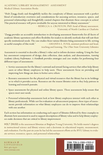 Table of Contents List of Figures, Tables, and Chapter Appendices Preface Chapter 1: Assessment Framework Chapter 2: Service Assessments Chapter 3: Case Study: Assessing Services and Staffing for Library Service Points Chapter 4: Learning from Our Users: A Usability Study of a Library Website Chapter 5: Assessing & Evaluating the Maryland Shared Open Access Repository Chapter 6: Resources Assessments Chapter 7: Weeding Decisions for a Science and Engineering Print Collectio Chapter 8: A Playbook for Journal License Negotiations: Data Informed Assessment Chapter 9: Space Assessments Chapter 10: Creating Space with Our Community in Mind: A Library Building Assessment Chapter 12: Facilitating Innovative Research, Creative Thinking and Problem-Solving: Chapter 13: Personnel Relationship Assessments Chapter 14: A Deep Bench: Staff Enrich Library Assessment Activities in an Academic Library Chapter 15: Sorting Out Library Programs, Services, and Tasks: Identifying Strategic Chapter 16: Communication Networks Within an Academic Library Chapter 17: What's Next?