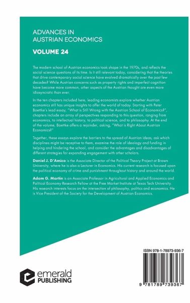 Here, leading economists explore whether Austrian economics is still relevant today. Starting with Peter Boettke's lead essay, "What is Wrong with Austrian Economics?", chapters include an array of perspectives responding to this question, ranging from economics, to intellectual history, to political science, and to philosophy.
