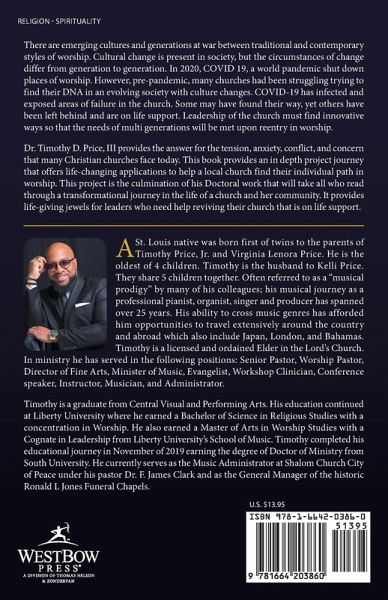 There are emerging cultures and generations at war between traditional and contemporary styles of worship. Cultural change is present in society, but the circumstances of change differ from generation to generation. In 2020, COVID 19, a world pandemic shut down places of worship. However, pre-pandemic, many churches had been struggling trying to find their DNA in an evolving society with culture changes. COVID-19 has infected and exposed areas of failure in the church. Some may have found their way, yet others have been left behind and are on life support. Leadership of the church must find…mehr
