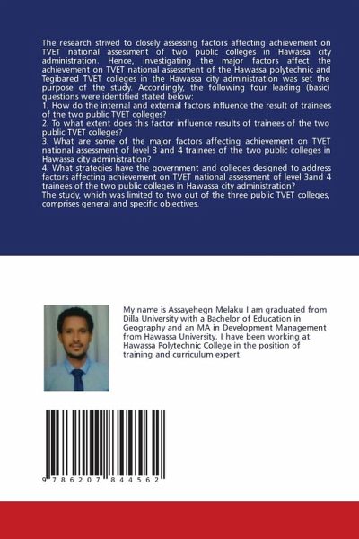 The research strived to closely assessing factors affecting achievement on TVET national assessment of two public colleges in Hawassa city administration. Hence, investigating the major factors affect the achievement on TVET national assessment of the Hawassa polytechnic and Tegibared TVET colleges in the Hawassa city administration was set the purpose of the study. Accordingly, the following four leading (basic) questions were identified stated below:1. How do the internal and external factors influence the result of trainees of the two public TVET colleges?2. To what extent does this factor influence results of trainees of the two public TVET colleges?3. What are some of the major factors affecting achievement on TVET national assessment of level 3 and 4 trainees of the two public colleges in Hawassa city administration?4. What strategies have the government and colleges designed to address factors affecting achievement on TVET national assessment of level 3and 4 trainees of the two public colleges in Hawassa city administration? The study, which was limited to two out of the three public TVET colleges, comprises general and specific objectives.