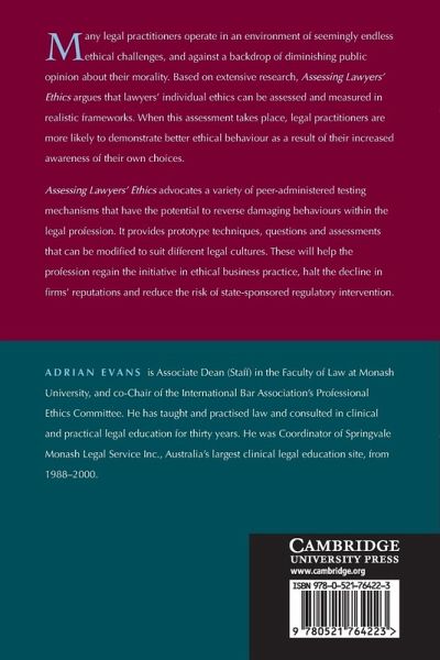 Legal practitioners operate in an environment of seemingly endless ethical challenges, and against a backdrop of diminishing public opinion about their morality. Based on extensive research, Assessing Lawyers' Ethics argues that lawyers' individual ethics can be assessed and measured in realistic frameworks.