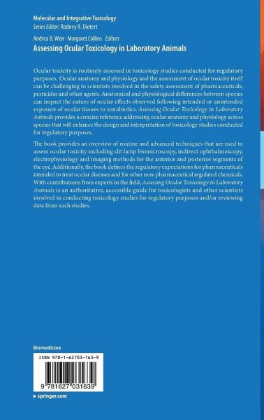 Ocular toxicity is routinely assessed in toxicology studies conducted for regulatory purposes. Ocular anatomy and physiology and the assessment of ocular toxicity itself can be challenging to scientists involved in the safety assessment of pharmaceuticals, pesticides and other agents. Anatomical and physiological differences between species can impact the nature of ocular effects observed following intended or unintended exposure of ocular tissues to xenobiotics. Ocular Toxicity in Laboratory Animals provides a concise reference addressing ocular anatomy and physiology across species that will enhance the design and interpretation of toxicology studies conducted for regulatory purposes.