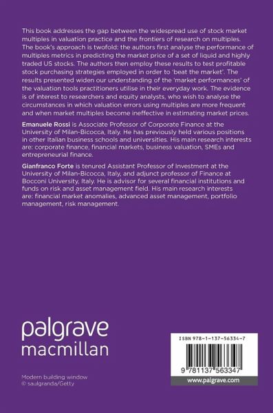 Thisbook addresses the gap between the widespread use of stock market multiples invaluation practice and the frontiers of research on multiples. The book's approachis twofold: the authors first analyse the performance of multiples metrics inpredicting the market price of a set of liquid and highly traded US stocks. Theauthors then employ these results to test profitable stock purchasingstrategies employed in order to 'beat the market'. The results presented widenour understanding of the "market performances" of the valuation tools practitionersutilise in their everyday work. The evidence is of interest to researchers and equity analysts, who wish to analyse the circumstances in whichvaluation errors using multiples are more frequent and when market multiplesbecome ineffective in estimating market prices.