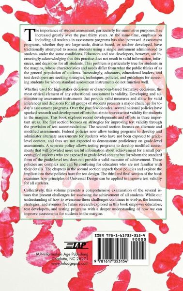 The importance of student assessment, particularly for summative purposes, has increased greatly over the past thirty years. At the same time, emphasis on including all students in assessment programs has also increased. Assessment programs, whether they are large-scale, district-based, or teacher developed, have traditionally attempted to assess students using a single instrument administered to students under the same conditions. Educators and test developers, however, are increasingly acknowledging that this practice does not result in valid information, inferences, and decisions for all students. This problem is particularly true for students in the margins, whose characteristics and needs differ from what the public thinks of as the general population of students. Increasingly, educators, educational leaders, and test developers are seeking strategies, techniques, policies, and guidelines for assessing students for whom standard assessment instruments do not function well. Whether used for high-stakes decisions or classroom-based formative decisions, the most critical element of any educational assessment is validity. Developing and administering assessment instruments that provide valid measures and allow for valid inferences and decisions for all groups of students presents a major challenge for today's assessment programs. Over the past few decades, several national policies have sparked research and development efforts that aim to increase test validity for students in the margins. This book explores recent developments and efforts in three important areas. The first section focuses on strategies for improving test validity through the provision of test accommodations. The second section focuses on alternate and modified assessments. Federal policies now allow testing programs to develop and administer alternate assessments for students who have not been exposed to grade-level content, and thus are not expected to demonstrate proficiency on grade-level assessments. A separate policy allows testing programs to develop modified assessments that will provided more useful information about achievement for a small percentage of students who are exposed to grade-level content but for whom the standard form of the grade-level test does not provide a valid measure of achievement. These policies are complex and can be confusing for educators who are not familiar with their details. The chapters in the second section unpack these policies and explore the implications these policies have for test design. The third and final section of the book examines how principles of Universal Design can be applied to improve test validity for all students. Collectively, this volume presents a comprehensive examination of the several issues that present challenges for assessing the achievement of all students. While our understanding of how to overcome these challenges continues to evolve, the lessons, strategies, and avenues for future research explored in this book empower educators, test developers, and testing programs with a deeper understanding of how we can improve assessments for students in the margins.