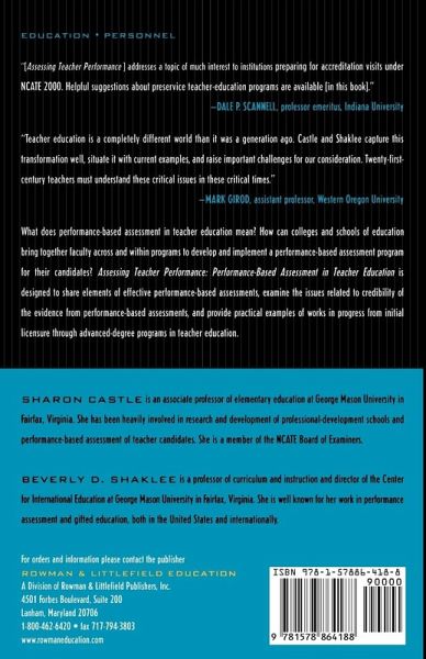 Sharon Castle is associate professor of elementary education at George Mason University in Fairfax, Virginia. She has been heavily involved in research and development of Professional Development Schools and performance-based assessment of teacher candidates. She is a member of the NCATE Board of Examiners. Beverly D. Shaklee is a professor of curriculum & instruction and director of the Center for International Education at George Mason University in Fairfax, Virginia. She is well known for her work in performance assessment and gifted education, both in the United States and internationally.
