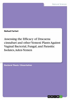 Doctoral Thesis / Dissertation from the year 2024 in the subject Biology - Botany, , language: English, abstract: The study examined the properties of various plant extracts. Dracaena cinnabari of which that exhibited the highest ethanol extractive value, low moisture content, and contained specific phytochemical classes. Valachia nilotica subsp. indica, Capparis cartilaginea, and Fagonia paulayana displayed variations in their phytochemical profiles. Gas-Chromatography-Mass Spectrometry (GC-MS) and Fourier- Transform Infrared Spectroscoy (FTIR) analysis aided in identifying the bioactive compounds present in these medicinal plants, suggesting their potential for therapeutic applications. The findings provide valuable insights into the properties and potential uses of these plant extracts (Ethanol70% and Aqueous). Dracenia cinnabari, Capparis cartilaginea, Vachellia nilotica subspecies indica, and Fagonia paulayana are medicinal plants used in traditional Yemen medicine for the treatment a variety of infectious and non-infectious diseases. These plants were selected to evaluate their potential antibacterial, antifungal and Trichomoniasis- anti activity. The plant samples (Aden, Lahaj, and Abyan governorates. Dracaena cinnabari. specimens were collected from different locations on the island of Socotra during the winter of 2019) used in this study were processed at the biology laboratory of the Faculty of Education in Aden. Microbiological procedures, including the isolation and identification of bacteria, fungi, and Trichomonas vaginalis, were conducted at the laboratories of the Supreme Board of Drugs and Medical Appliances. The research took place from January 2020 to August 2023, focusing on the city of Aden in Yemen. The study encompassed various healthcare facilities, both public and private, including the German Aden Hospital, Al-Sadqah Hospital, Al-Madinah Medical Center, Al-Hanan Medical Center, and Aden German International Hospital. The choice of Aden was based on its environmental conditions, such as high temperatures, humidity, and inadequate hygiene prastic, which contribute to the increased prevalence of bacterial and fungal infections.