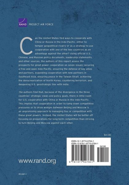 This report, part of a four-part series, describes the potential for U.S. cooperation with China or Russia in the Indo-Pacific across seven issues, including securing a free and open Indo-Pacific and the denuclearization of North Korea.
