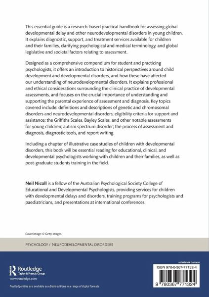 Designed as a comprehensive compendium for student and practicing psychologists, it offers an introduction to historical perspectives around child development and developmental disorders, and how these have affected our understanding of neurodevelopmental disorders. It explains professional and ethical considerations surrounding the clinical practice of developmental assessments, and focuses on the crucial importance of understanding and supporting the parental experience of assessment and diagnosis. Key topics covered include: definitions and descriptions of genetic and chromosomal disorders and neurodevelopmental disorders; eligibility criteria for support and assistance; the Griffiths Scales, Bayley Scales, and other notable assessments for young children; autism spectrum disorder; the process of assessment and diagnosis, diagnostic tools, and report writing.