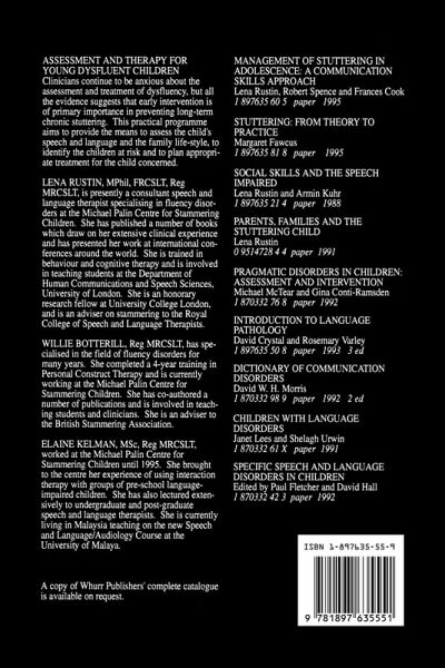 Lena Rustin is the author of Assessment and Therapy for Young Dysfluent Children: Family Interaction, published by Wiley. Elaine Kelman is the author of Assessment and Therapy for Young Dysfluent Children: Family Interaction, published by Wiley.