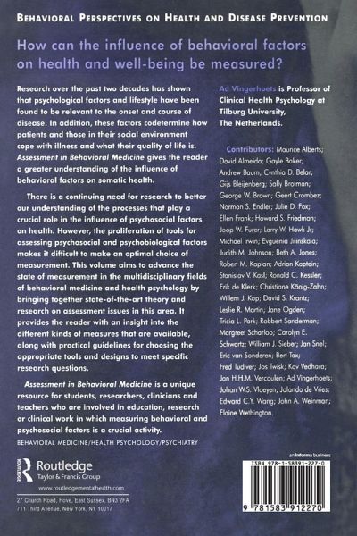A unique resource for students, researchers, clinicians and teachers who are involved in education, research or clinical work in which behavioural medicine takes a crucial position.