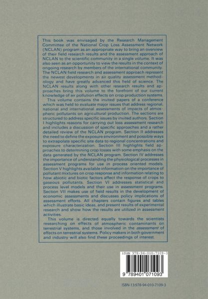 During late 1985, the Research Management Committee (RMC) of the National Crop Loss Assessment Network (NCLAN) decided the most ap propriate way to bring the NCLAN program to a successful conclusion was to hold an international conference. It was envisaged as an opportunity to present an overview of results from the NCLAN program and as a chance to view the results in the context of ongoing research by members of the international community. _ Although we wanted the Conference to have an assessment orientation, it was also intended for the Conference to focus on current state-of-knowledge. The Conference was designed to overview the needs of crop loss assessment, current approaches to assessment, progress in the development of predictive models, the use of the information for economic predictions, and the application of the data in policy decisions. Every effort was made to assure a broad representation of ideas. The Conference program was developed to evaluate major issues that address regional/national assessments of impacts of atmospheric pollutants on agricultural production. Sessions were structured to address specific issues by invited speakers, and by contributed papers and posters. First, background needs for doing loss assessment research including specific approaches and a rather detailed review of the NCLAN program were addressed (Session I). Session II addressed the needs for defining the exposure environment (e. g. extrapolating to regional concentrations and exposure characterization). Field approaches for determining crop loss were reviewed in Session III.